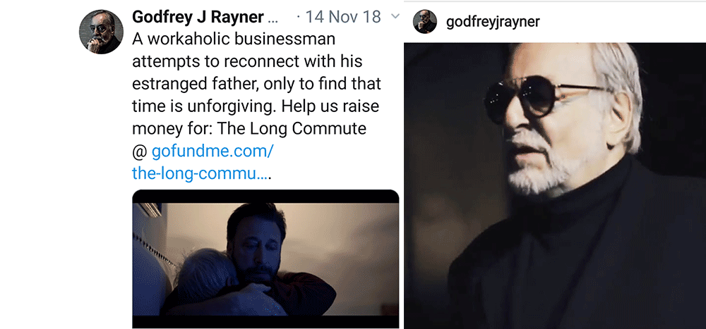 While the website updates his personal acting news; along with clips, resume, and headshots, Facebook, Instagram, and Twitter updates fill his social needs and adds that extra internet presence to help promote him.